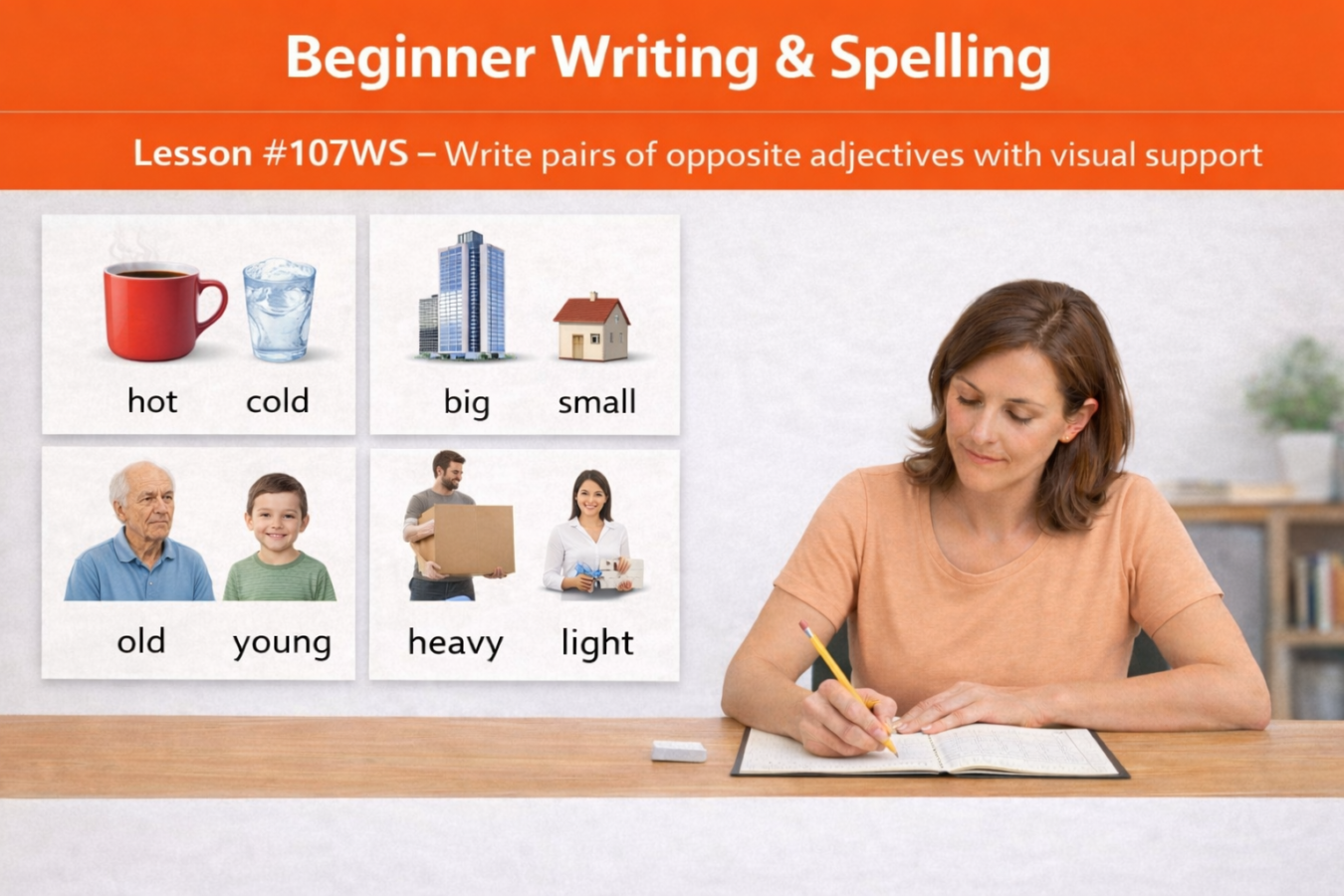 Beginner Writing and Spelling Lesson #112WS Spell the 5 Wh- and H- words. Use each one in a sentence.