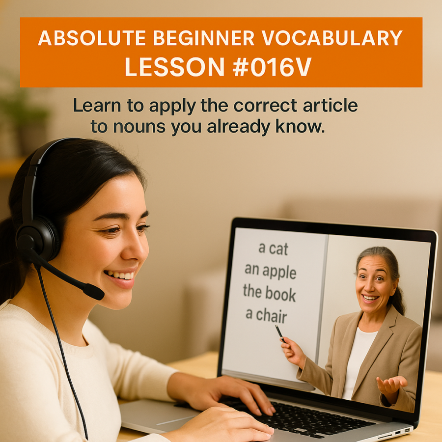 In this lesson, you will learn to apply the correct article to nouns you already learned. You’ll strengthen your use of a, an, and the in context with nouns you already know. A short video supports your learning, and like all lessons, this one links with the rest of the Absolute Vocabulary lessons to build skills step by step.