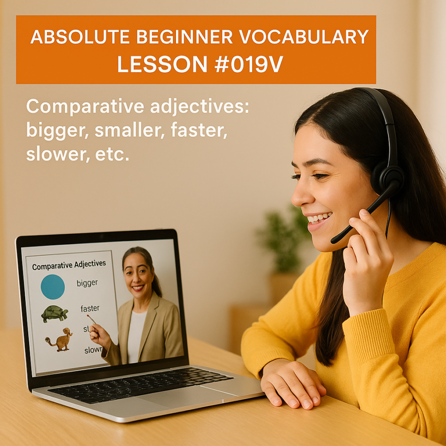 In this lesson, you will learn comparative adjectives: bigger, smaller, faster, slower, etc.. You’ll compare people and things with adjectives like bigger, smaller, faster, slower to describe differences clearly. A short video supports your learning, and like all lessons, this one links with the rest of the Absolute Vocabulary lessons to build skills step by step.