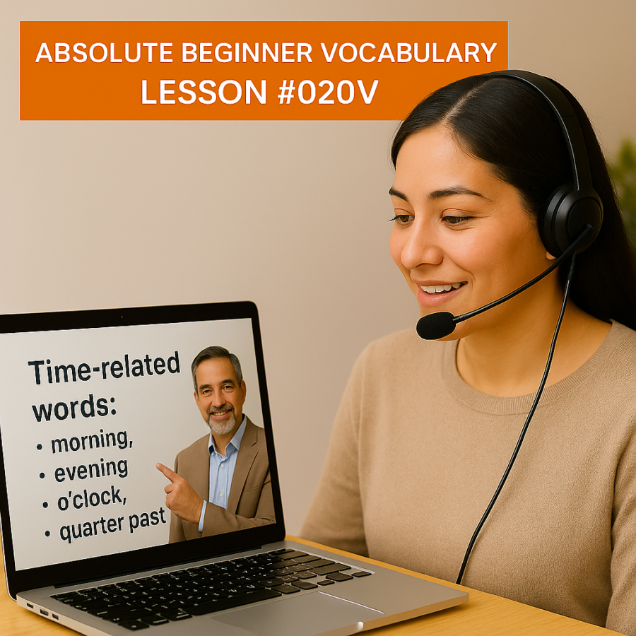In this lesson, you will learn common time-related words: morning, afternoon, evening, midnight, dawn, sunrise, sunset, o’clock, half-past, quarter past, etc. A short video supports your learning, and like all lessons, this one links with the rest of the Absolute Vocabulary lessons to build skills step by step.